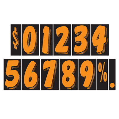 Fluorescent Red on Black, 3-D shaded design, adhesive windshield number. An inexpensive yet highly effective sales tool to advertise a year model or price. Sold by the dozen {12 per pack}. Size: 7 1/2" tall x 4" wide. Neatly shrink wrapped in packs of a dozen with a chipboard backer to prevent curling during storage. Made of durable, waterproof vinyl, these bright, fluorescent numbers demand attention! Each number is slit on the back for easy application. Removable adhesive allows easy, clean removal. Not sure what to get? Try our Starter Kit. See EZ161