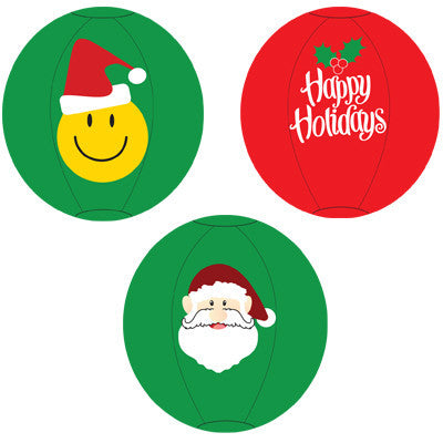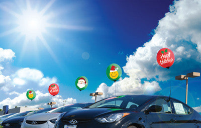 Now our Best Selling Reusable Balloons are ready for the holidays! Three festive designs adorn these already eye catching no helium balloons! Decorate your front line with them today! Choose from our Happy Face with Santa Hat, Happy Holidays or Santa Face! Can be used with our Window Kits, Ground Pole Kit or Cluster Kits. NO HELIUM NEEDED! Guaranteed not to break! Reusable Balloon ONLY! Similar to a beach ball, this reusable inflatable balloon is made out of PVC vinyl and is 20 inches in diameter. A great way to attract attention without using helium since you only need air.