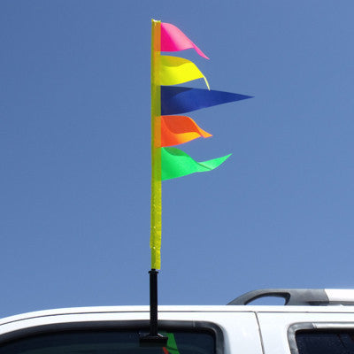 3' Tall Pennant Flag Clip-On Kit. No Antenna! No Worries! Each kit includes one Pennant Antenna Flag and one 36" pole with window clip. Poles also sold seperately (EZ619).
