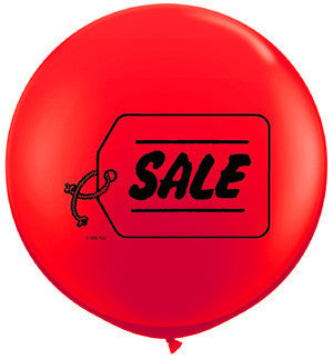 Attract attention to your dealership with this giant red tag sale design! Imprinted on one side, it is made from 100% natural, biodegradable latex. Sold by the each. Due to wind, weather, temperature and over inflation, no guarantee is offered on balloons. Quantity Discount Prices available on 6 or 11 or more.