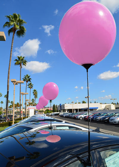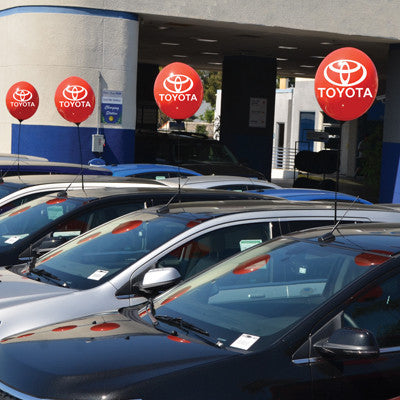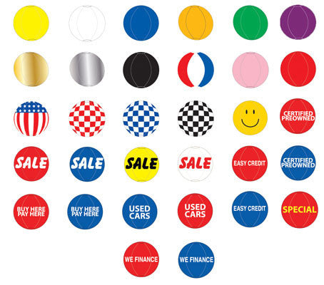 46 New Designs to choose from including Dealer and Real Estate logos! NO HELIUM NEEDED! Guaranteed not to break! Reusable Balloon ONLY! Similar to a beach ball, this reusable inflatable balloon is made out of PVC vinyl and is 20 inches in diameter. It is a great way to attract attention without using helium since you only need air. Use with the Reusable Cluster Kit (EZ550), Balloon Holder Kit (EZ529) or the Reusable Balloon Ground Kit (EZ546). Don't forget our Quick Flow Deluxe Balloon Inflator EZ512. Please note that while this product can be used anytime of the year it is still sensitive to air density. In colder weather air in the Balloons will contract causing the balloon to deflate a little. Filling the balloon all the way might help it stay inflated. Slight deflation does not mean the Balloon is defective. Keeping the Reusable Balloon inflated in a controlled climate (such as an office) is a good way to test the Balloon.