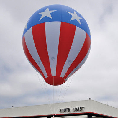 Our Giant 8' Hot Air Balloons are guaranteed to get noticed! Great for holidays and special events. These giant eye catchers are made of reusable lightweight polyvinyl. At 8' they hold approximately 220 cubic feet of helium. Lift Weight is 5lbs. Includes nylon harness, 125 ft. of nylon tether line, a vinyl repair kit and an inflation hose. Available in Patriotic Stars & Stripes and Multi Color Stripes (Yellow, Red, Blue, White, Green and Orange)