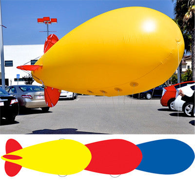 Demand attention with these high flying, eye catching Blimps! These Giant 17' Blimps are made of reusable lightweight polyvinyl. The blimp is 17' x 6 1/2' and hold approximately 410 cubic feet of helium. Lift weight is 10 lbs. Includes nylon harness, 125 ft. of nylon tether line, a vinyl repair kit and an inflation hose.