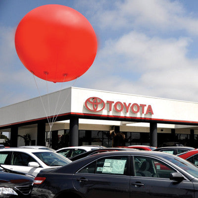 Having a sale? Let everyone know with our GIANT 8' round balloons! These huge balloons are made of reusable lightweight polyvinyl and hold approximately 210 cubic feet of helium. Lift weight is 8lbs. Includes nylon harness, 125 ft. of nylon tether line, a vinyl repair kit and an inflation hose. Use with our 105' Pennant (Balloon Pennant) EZ363 to get a really great look!