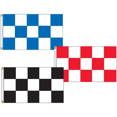 Create the Racing Look with these Checkered Flags! Made of ultra-rugged "Dura-Knit" style polyester fabric and penetration printed for two-sided display with fade resistant inks. Each 3 foot x 5 foot flag is finished with a durable canvas header and brass grommets along the 3 foot vertical side. Available in three color combinations.