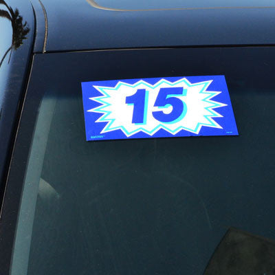 Signs are 7" high x 9" long, slit on the back for easy use, shrink wrapped and sold by the dozen and made of durable weatherproof vinyl.