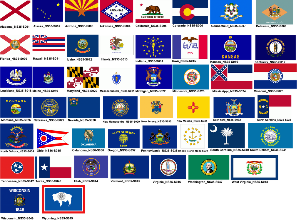 Our state flags are 3 feet by 5 feet in dimension and made of polyester with 2 metal grommets.