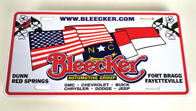 Aluminum Embossed License Plates. Made of .024 guage injection molded aluminum. Raised letter imprint to get your plates a great look. Get your vehicles noticed even after the sale! One color imprint, additional colors available. One time $100 set up fee. Minumum order of 500