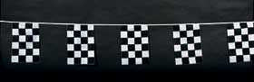 Get The Racing Look! Made of heavy duty cloth, 20 rectangle flags are sewn on a 50 foot nylon rope. Each rectangle flag is 12 inches wide x 18 inches tall. Black & White checkered design. Quantity Discount Prices available on quantities of 21 and 41 or more.