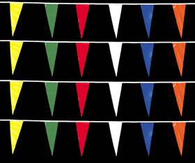 Made of 4 mil. polyethylene, 80 pennants are sewn on a 110 ft.nylon rope. Each pennant is 6 inches wide x 18 inches tall. 16 color combinations are available. Multicolor is usually in stock. Other colors available in approximately eight working days.Quantity Discount Prices available on quantities of 21 and 51 or more