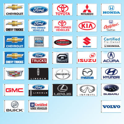 These 2 1/2' x 3 1/2' 100% nylon flags are hemmed on all four sides for extra durability and are reinforced with a heavy bleached cloth heading and two strong brass grommets. Printed on one side only. Note: These flags are available for exclusive use by authorized dealers only. Quantity Discount Prices available on quantities of 11 and 16 or more.