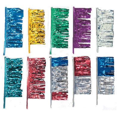 Outshine Your Competition! Made of brilliant, shiny metallic plastic, 12" x 3/4" strips are sewn side by side on a 32" sleeve. Available in 11 color combinations. Sold in packs of a dozen (12). Sleeve of product is silver, not as shown in the image. Please contact our Customer Service staff for further questions.