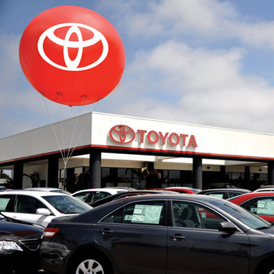 Two-Sided Custom Imprinted 8' Balloons! Let everyone know where you are located with our Giant 8' Custom Round Inflatable! These huge balloons are made of reusable lightweight polyvinyl and hold approximately 210 cubic feet of helium. Lift weight is 8lbs. Includes nylon harness, 125 ft. of nylon tether line, a vinyl repair kit and an inflation hose.