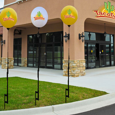 Draw attention to your front line! Large Custom Reusable Balloons are now front and center using our pole kit with Ground Spike. NO HELIUM NEEDED! Designed to be used with any landscaped or grassy area. Kit includes one 35" tall sturdy aluminum pole, one 30" tall fiberglass & reinforced plastic Balloon Holder, one Balloon Adapter Kit, one 27" tall steel Ground Spike and one Custom Reusable Balloon.