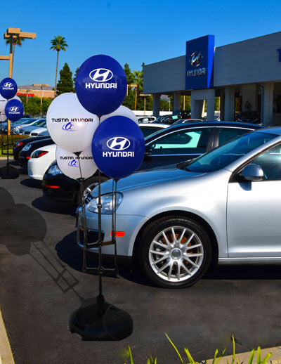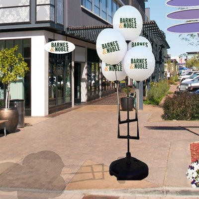 Custom Reusable Balloon Cluster Kit, get 5 times the impact of a single Reusable Balloon! The use of two Cluster Arms allows this kit to hold five Reusable Balloons at once! Sturdy Water Base allows Cluster to be placed on any flat surface! Each Kit includes one 35" tall sturdy aluminum pole, two Balloon Cluster Arms, Five 30" tall fiberglass & reinforced plastic Balloon Holders, Five Balloon Adapter Clips, one Water Base and five Custom Designed Reusable Balloons!