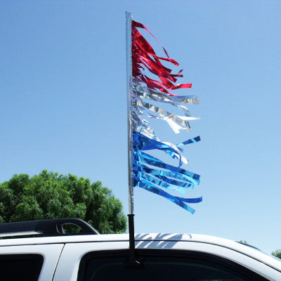 3' Tall Flag Kits No Antenna! No Worries! Each kit includes one Metallic Fringe Antenna Flag and one 36" pole with window clip. Poles are also sold seperately (EZ619)