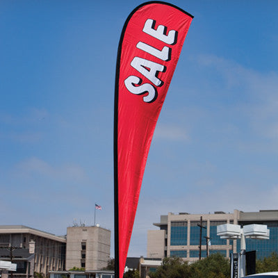 Printed on both sides, each nylon flag is 12 feet 10 inches tall and 2 feet 9 inches wide at its widest point and has a sewn sleeve on the side that easily slips over the Pole.© E-Z Lettering Service 2009. All rights reserved. These designs may not be reproduced in whole or in part without written authorization from E-Z Lettering ® Service.