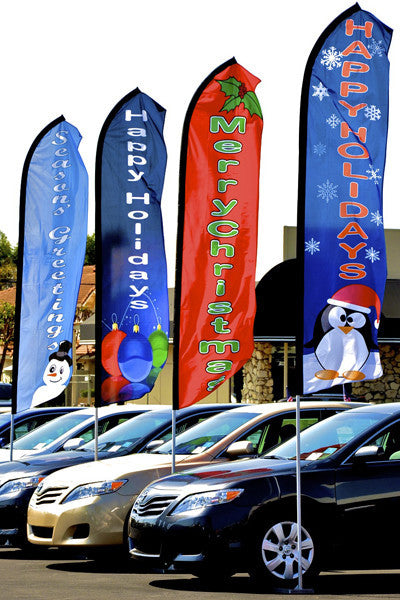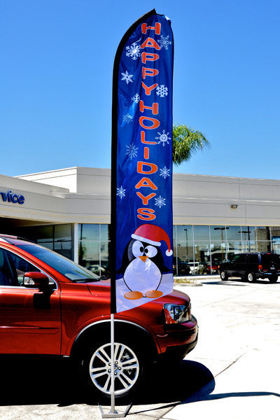 This holiday flag is specially designed as a replacement flag for the Swooper Flag & Pole Kit with Tire Base {EZ830}, for the Swooper Flag & Pole Kit with Ground Spike {EZ836} and for the Swooper Flag & Pole Kit with Trailer Hitch Adapter {EZ838}. Great for the front line or highlighting any vehicle, these flags flutter & flap with a slight breeze. However, unique design allows this flag to "fly" even when there is no wind. Each flag is 2 feet 5 1/2 inches wide x 11 feet 5 3/4 inches tall and has a sewn sleeve that easily slips over the specially designed flag pole.