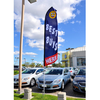 Draw attention with minimal effort with these 15 ft. tall giant flag kits! Great for the front line or highlighting any vehicle, these flags flutter & flap with a slight breeze. However, unique design allows this flag to "fly" even when there is no wind. Each Kit includes one flag of your choice, a 4-piece flag pole and a base designed to be used in the ground.. Each Kit includes one flag of your choice, a 4-piece flag pole and a ground spike. Each flag is 2 feet 5 1/2 inches wide x 11 feet 5 3/4 inches tall and has a sewn sleeve that easily slips over the specially designed flag pole. The 3-piece flag pole is made of anodized aluminum and is slightly over 15 feet tall. The Ground Spike base stand is made of galvanized steel and is designed to go into dirt, grass or sand.