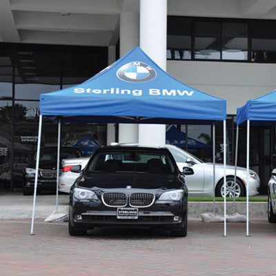 10' x 10' custom imprinted 4-sided tents! Available in one color (EZ863-1), two color (EZ863-2) and additional color imprint! Full color imprint! Custom imprinting also available on four sides of the valance (EZ863-1-VAL, EZ863-2-VAL). Commercial grade canvas tops are made of durable water-resistant Dupont Polyester. Tent Frames are made of textured, rust resistant powder-coated steel - Best Quality Construction Available!