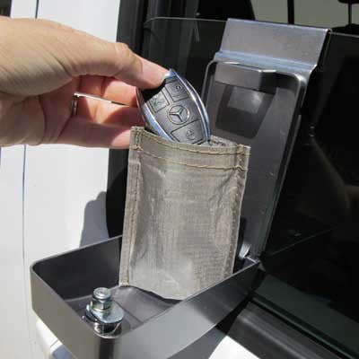 Finally a way to use your Lock Box with any Smart Key! Simply add the Smart Key to our Smart Key Pouch. The Copper and Nickel material, along with the conductive hook & loop closure block the Smart Key signal, so it won't unlock the car while in the Lock Box. Service can also use these Smart Key Pouches to lock the Smart Key in the vehicle if a customer needs and after hours pick up. Just have the customer leave the Pouch in the overnight drop box.