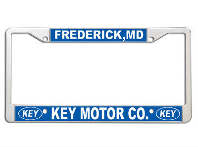 For a classy appearance and durability there is nothing like a metal license frame. Our high quality zinc metal frames are triple plated, so your advertising will stay with the vehicle for years. For 3-D impact, your one color imprint is hot stamped on raised letters against the chrome frame. Hot stamp imprint color application method helps prevent pealing and fading. Minimum order is 250 frames. Approximate production time 12-16 weeks after artwork has been approved.