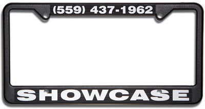 Advertise your dealership long after the sale! Constructed of weather-resistant, high-impact black polystrene. For 3-D impact, your imprint is hot stamped on raised letters about .055 inches high. Hot stamp imprint color application method helps prevent pealing and fading.