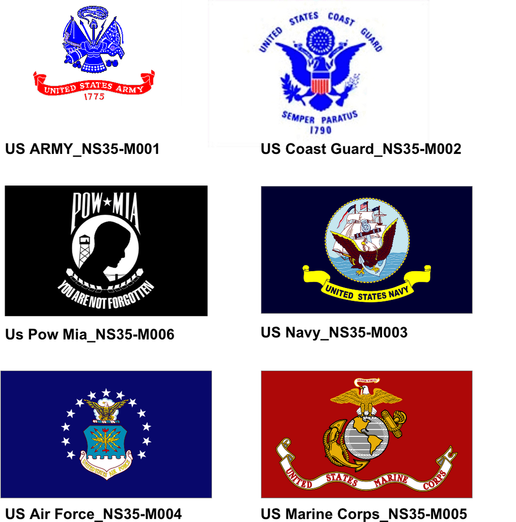 Our US military flags are 3 feet by 5 feet in dimension and made of polyester with 2 metal grommets.